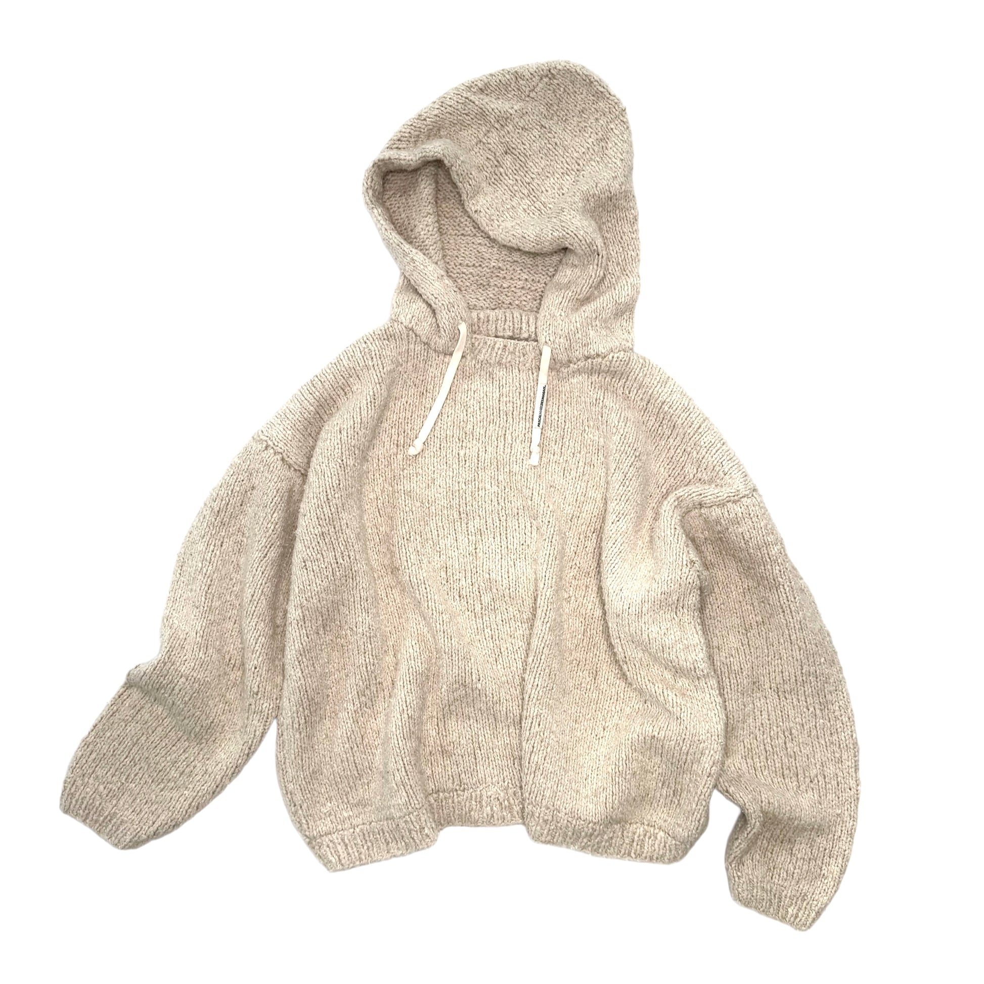 このニットは、ネパールの女性たちの手によって、一枚一枚丁寧に編まれています。